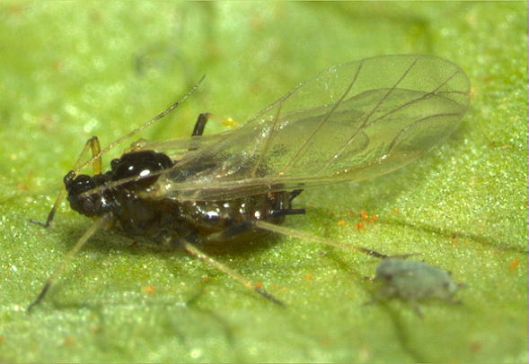 A polyphagous aphid species with a preference for Fabaceae.