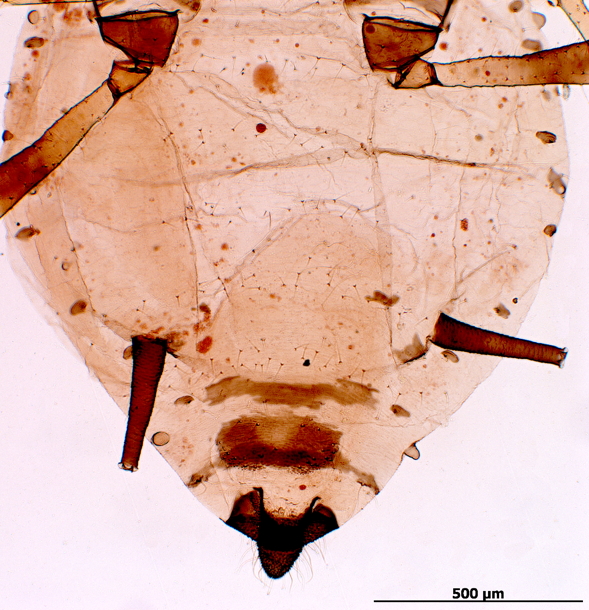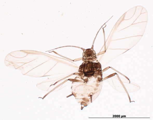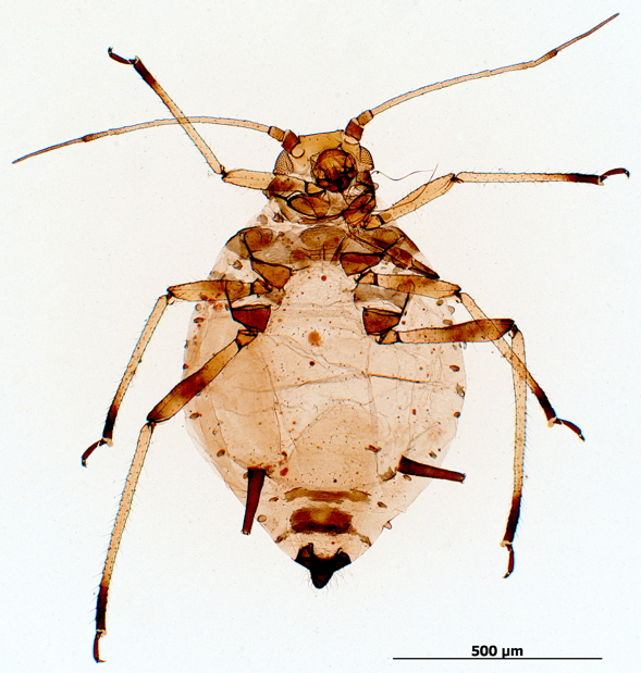 A polyphagous and widely distributed aphid species.