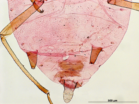 It is particularly important on Anethum, Carum, Coriandrum (Apiaceae) but is also known to attack Mentha (Lamiaceae), Amaranthus (Amaranthaceae), and Glycine max (Fabaceae). It has not been implicated in the transmission of any plant virus.
