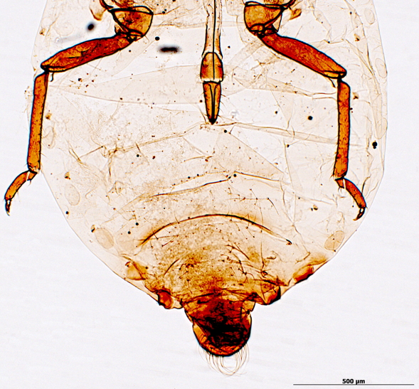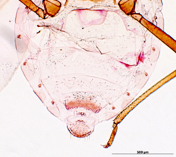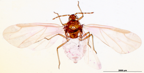 It is particularly important on Ambrosia, Aster, and Lactuca (Asteraceae), Agrotis, Poa, and Triticum (Poaceae), and Arachis, Phaseolus, and Trifolium (Fabaceae), but it also attacks Crataegus (Rosaceae) and a variety of other ornamentals. It has not been implicated in the transmission of any plant virus.