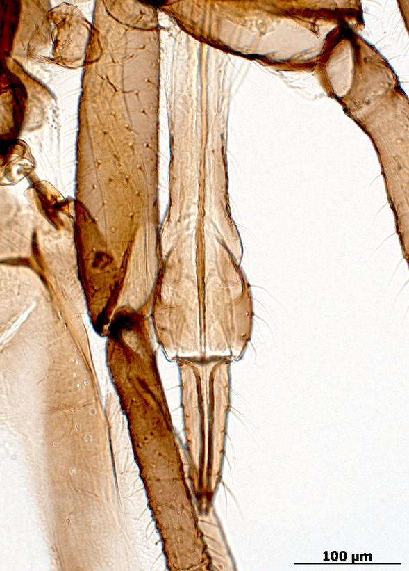 Basal stalk, arising near the base of the pterostigma of the forewing, from which produces 2—3 branches extending to the wing margin. The distal crossvein of the hindwing.