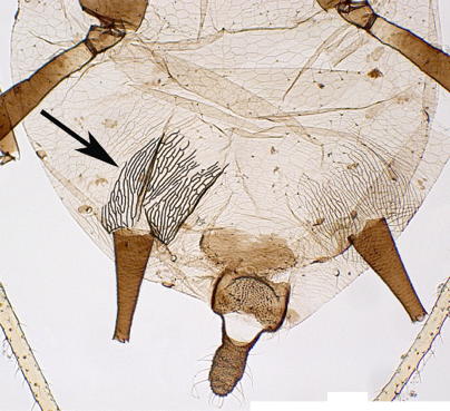 Found principally in Toxoptera, the stridulatory apparatusstridulatory apparatus: