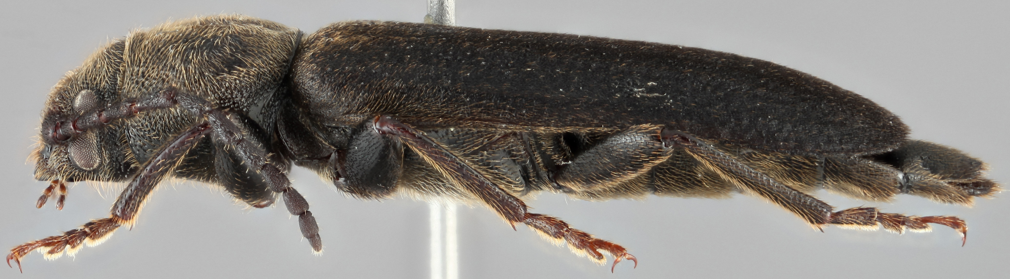 Can be differentiated from Arhopalus by the paired protibial spursprotibial spur: