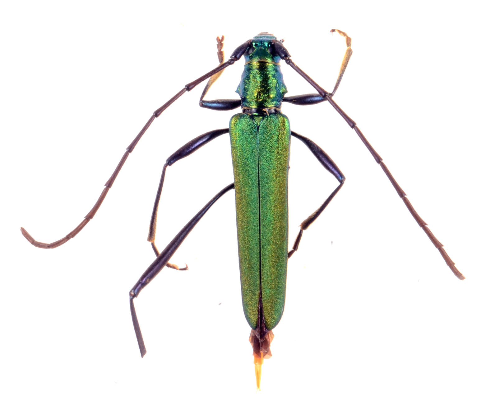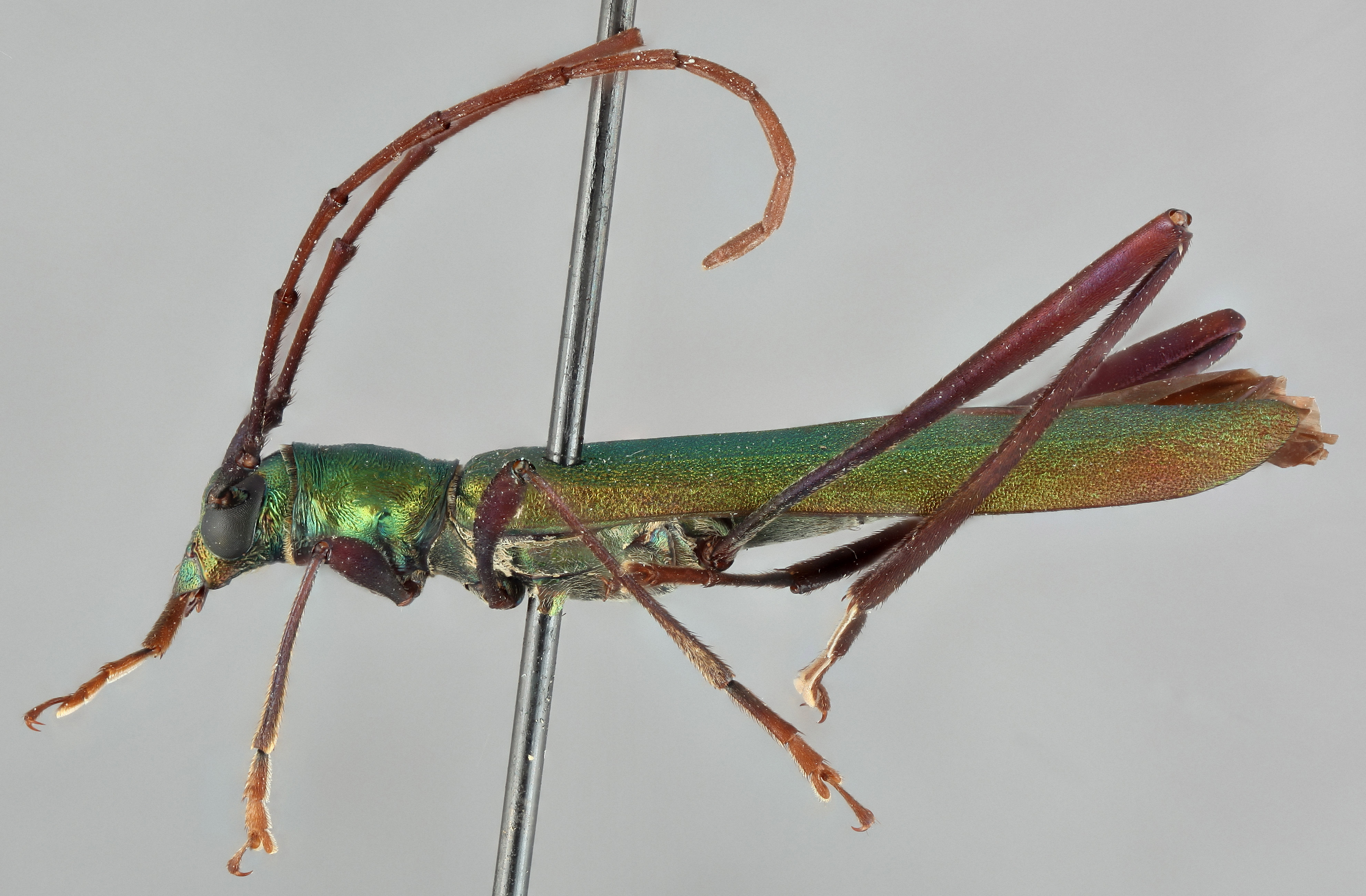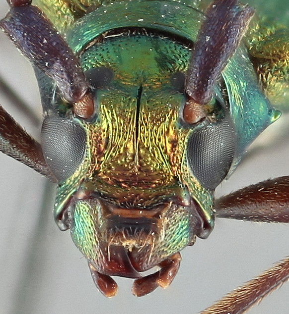 form and metallic green integument make this genus distinct among conifer feeders. The first metatarsomere longer than the remaining 4 combined will distinguish from many other Callichromatini.