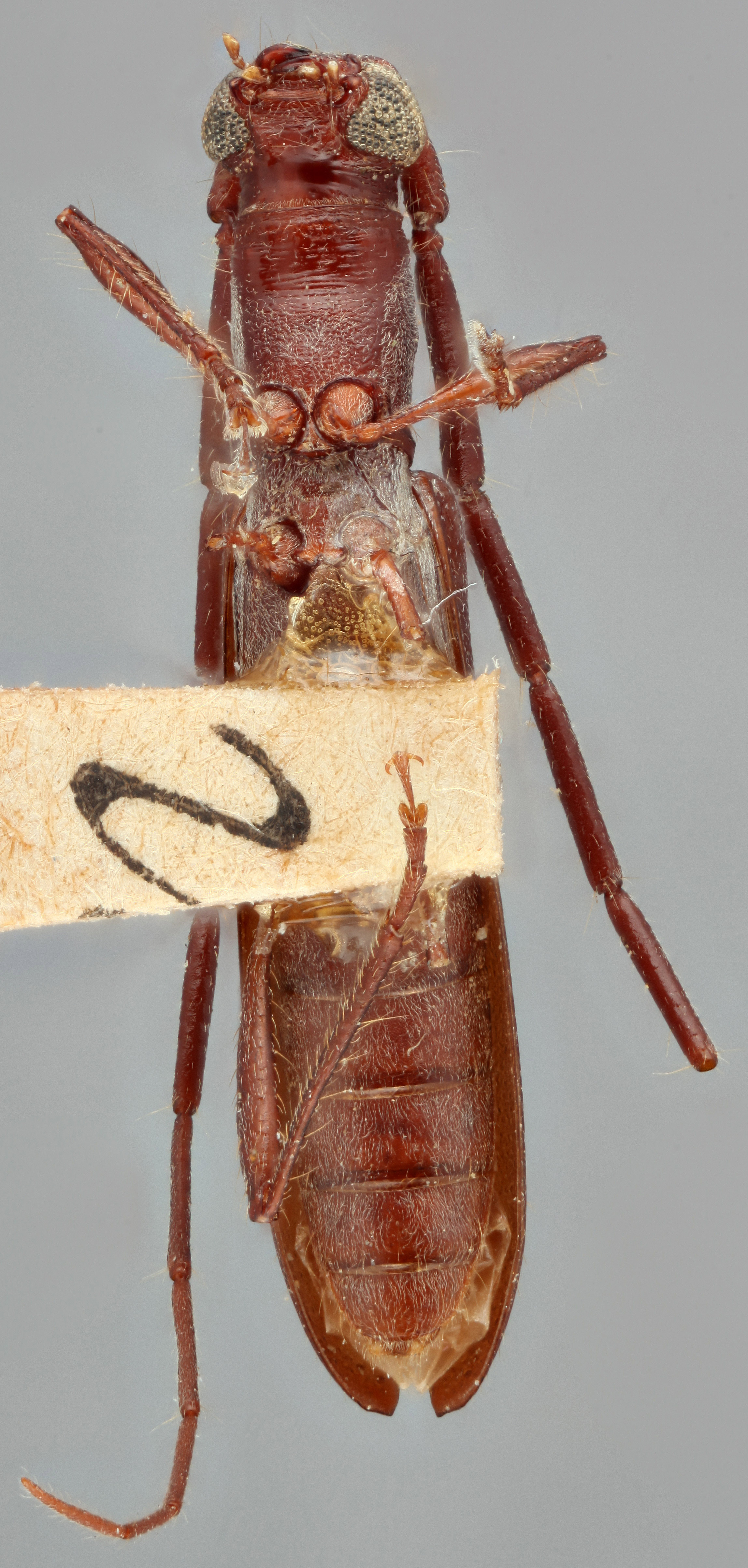 : antennal length reaching/surpassing end of body, antennal flagellar segments elongateelongate: