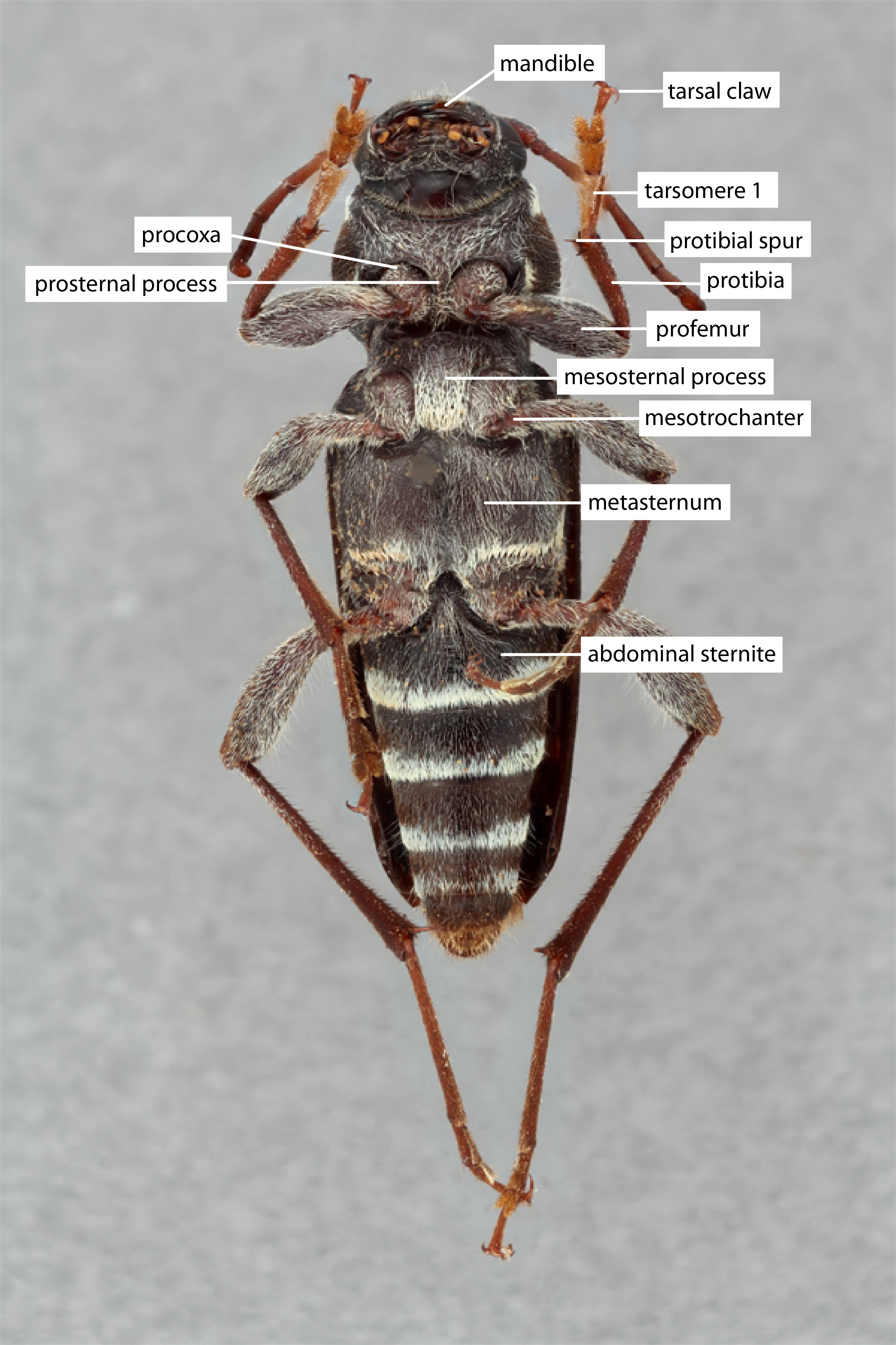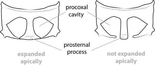 . Prosternum with intercoxal process narrow, about 1/4 as wide as coxal cavities. Mesosternummesosternum: