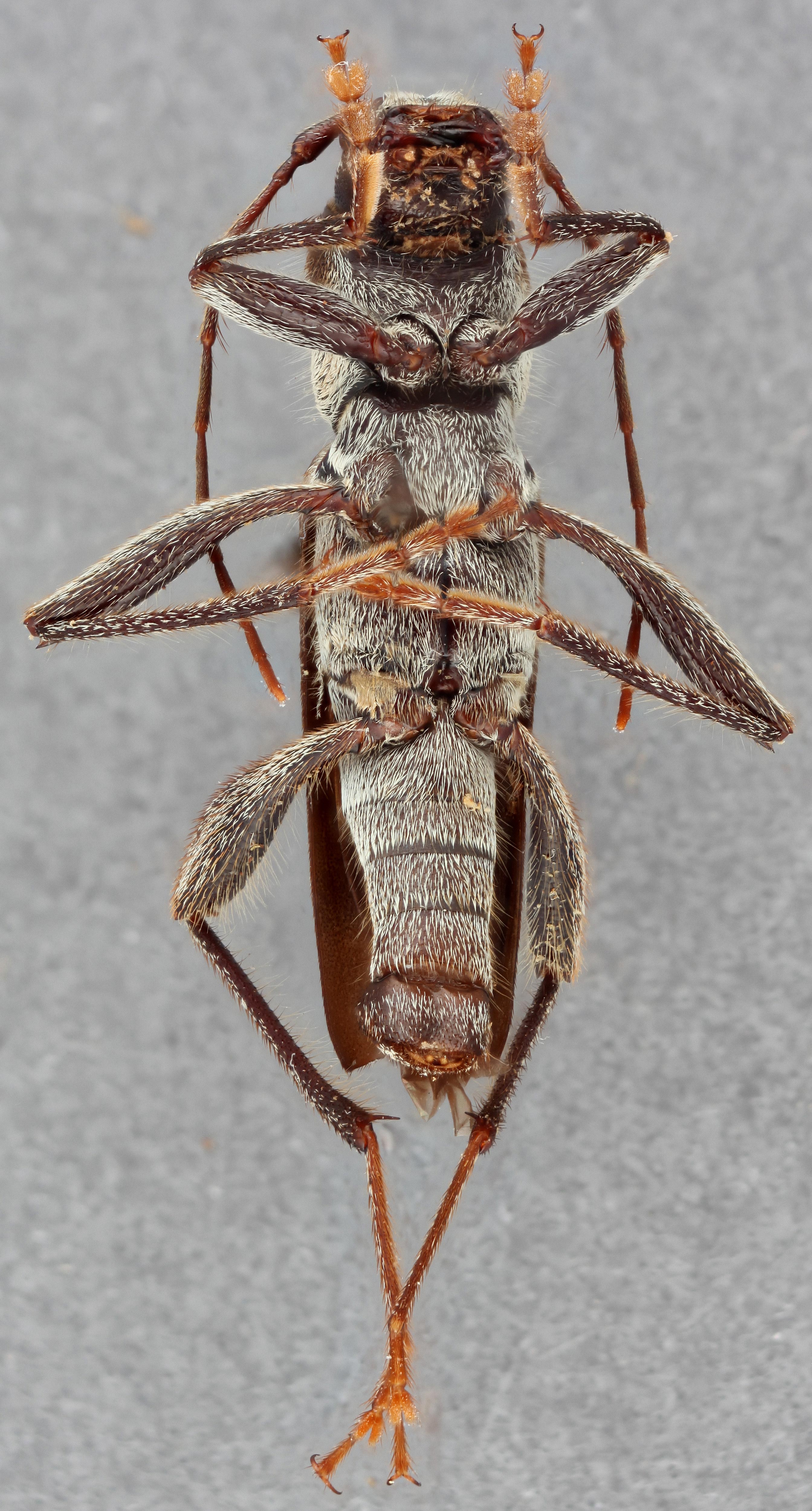 . The larvae can be distinguished from the similar-looking Xylotrechus and Clytus by the presence of small legs.
