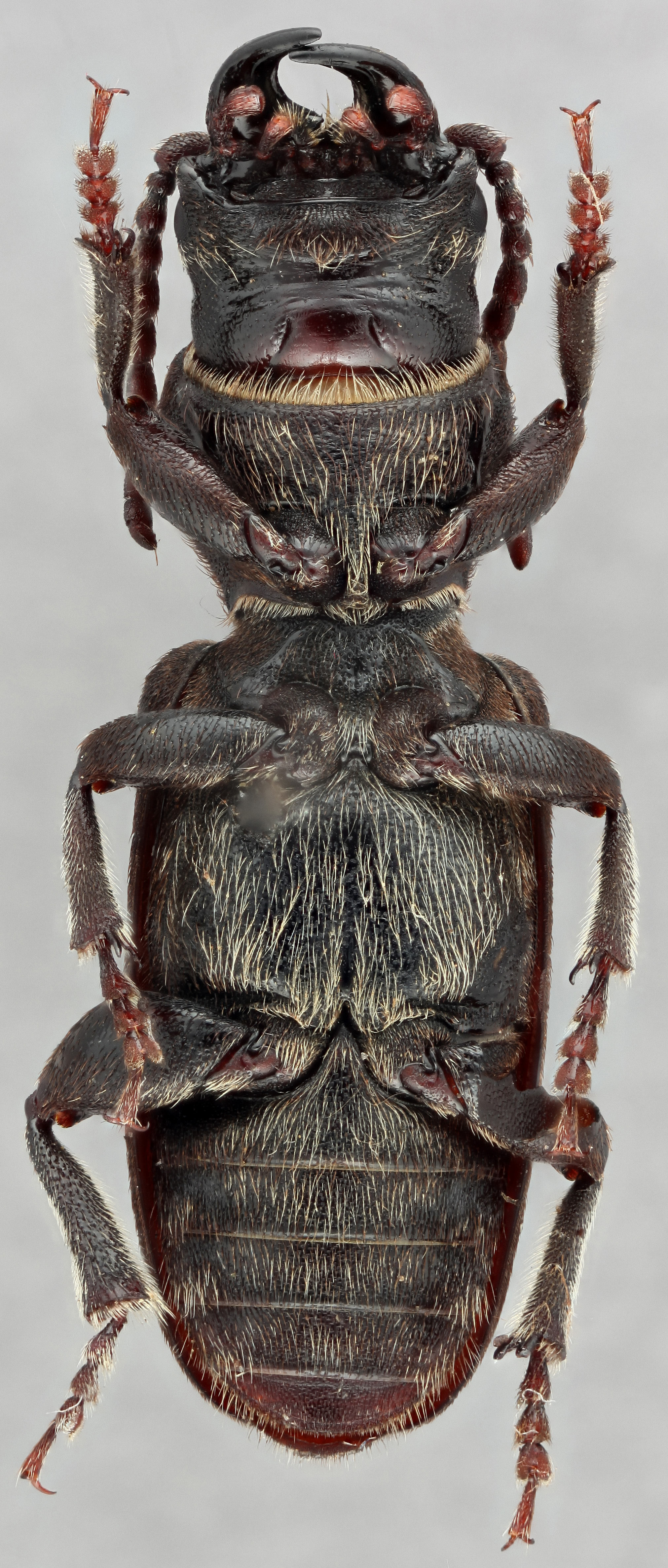 Spondylis Fabricius differs from Neospondylis as follows: mandibles with small teeth on the cutting edge; second segment of maxillary palpi shorter than third; galea small, digitiform, ligula strongly expanded laterally, deeply bilobed, with or without a prominent median tooth at apexapex: