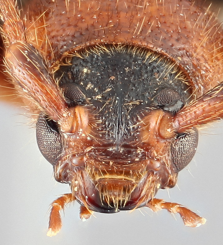 11-segmented and shorter than body in both sexes, second segment less than twice as long as broad; palpi very unequal. Pronotumpronotum: