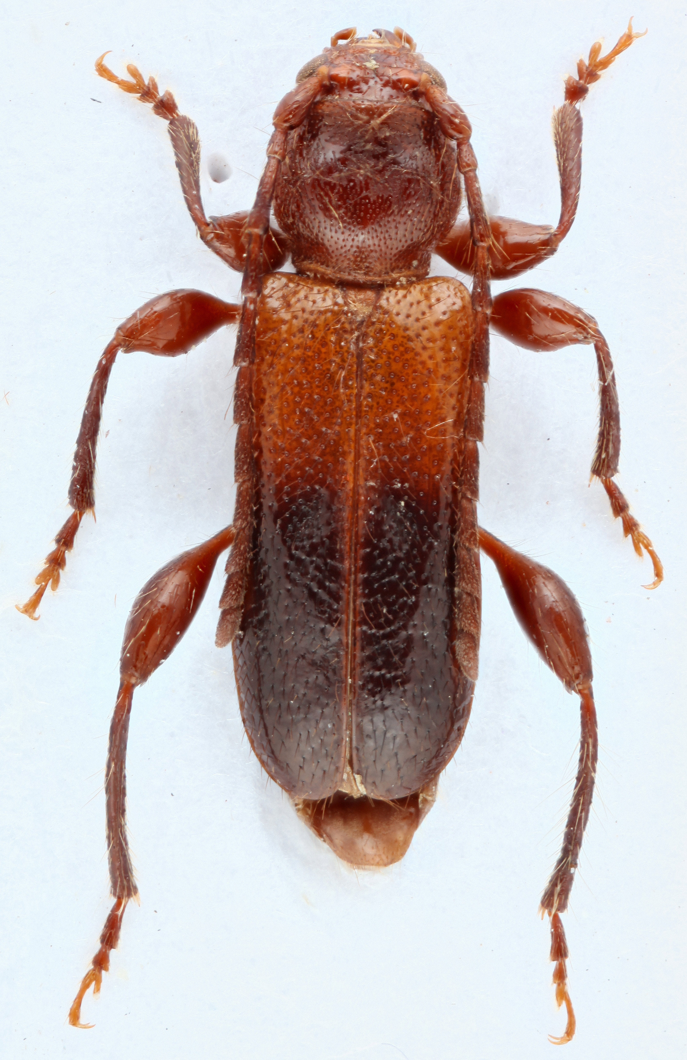 : elytral length reaching or close to end of abdomen, elytral apicesapex: