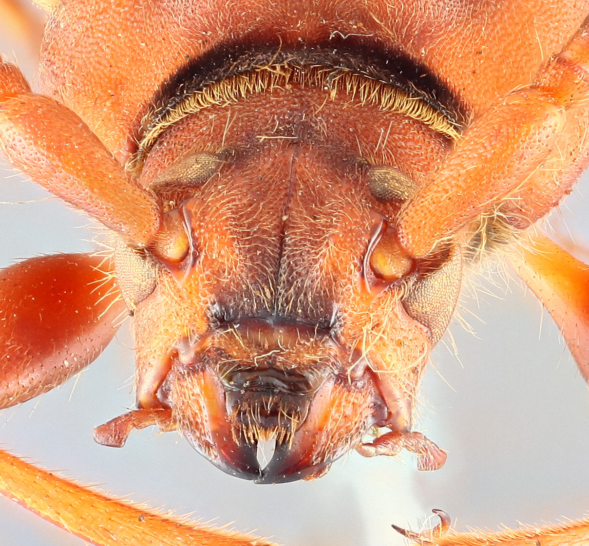 11-segmented, third segment a little longer than fourth; eyes not embracing antennal insertion. Pronotumpronotum: