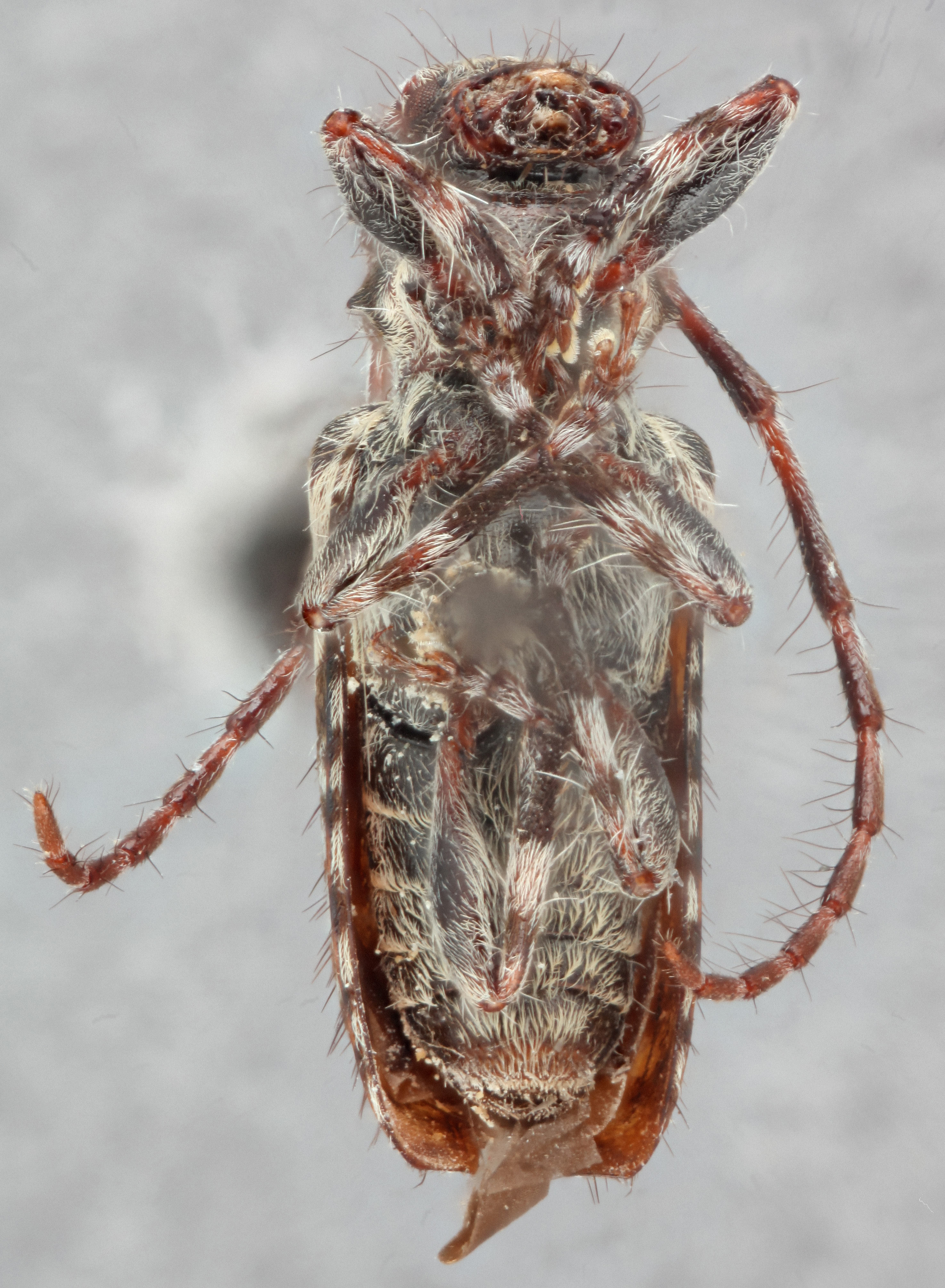 : antennal length reaching/surpassing end of body, antennal flagellar segments elongateelongate: