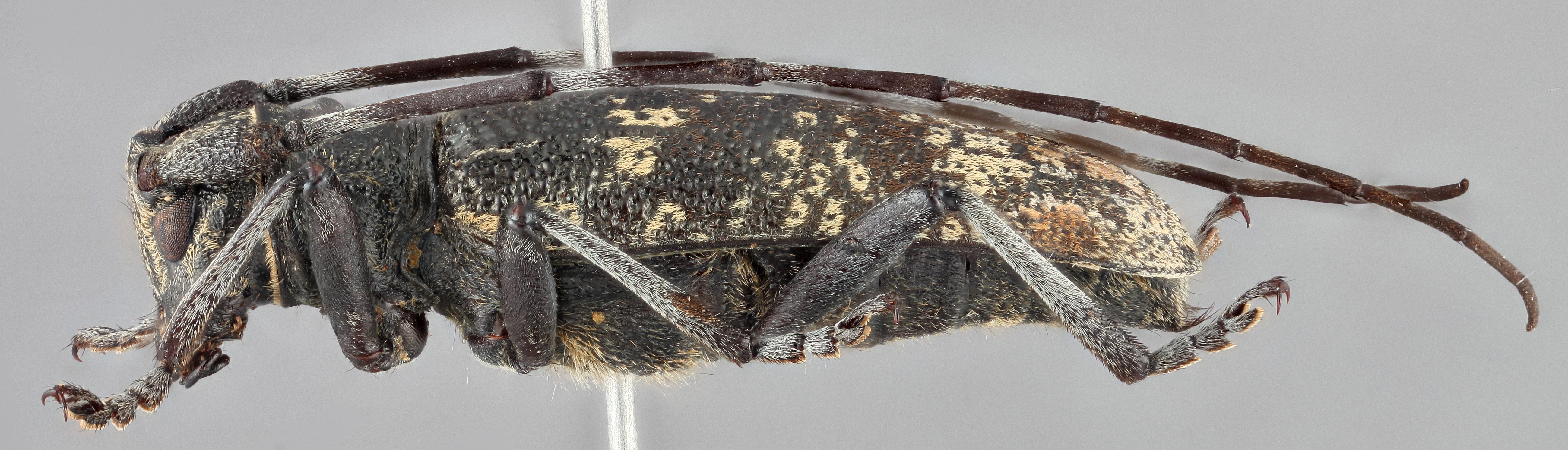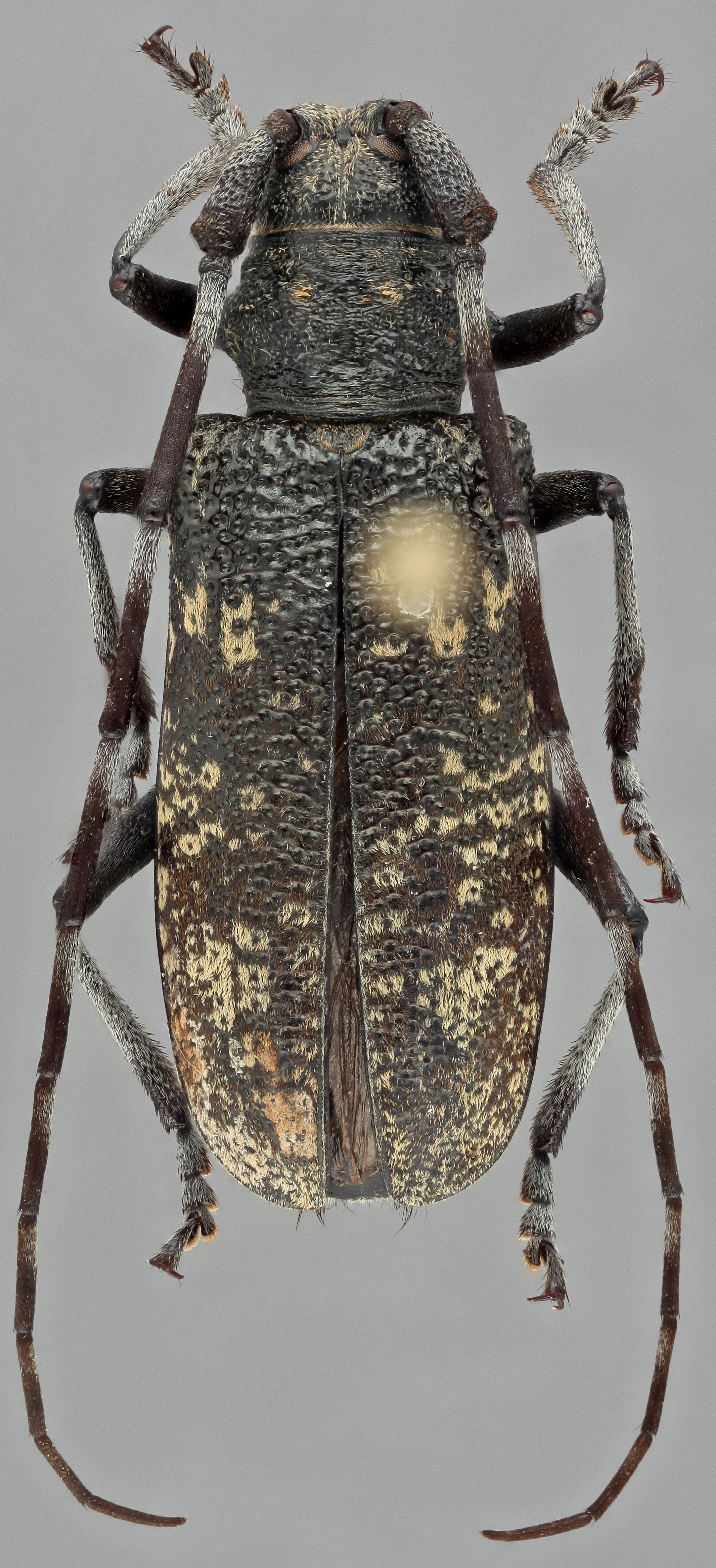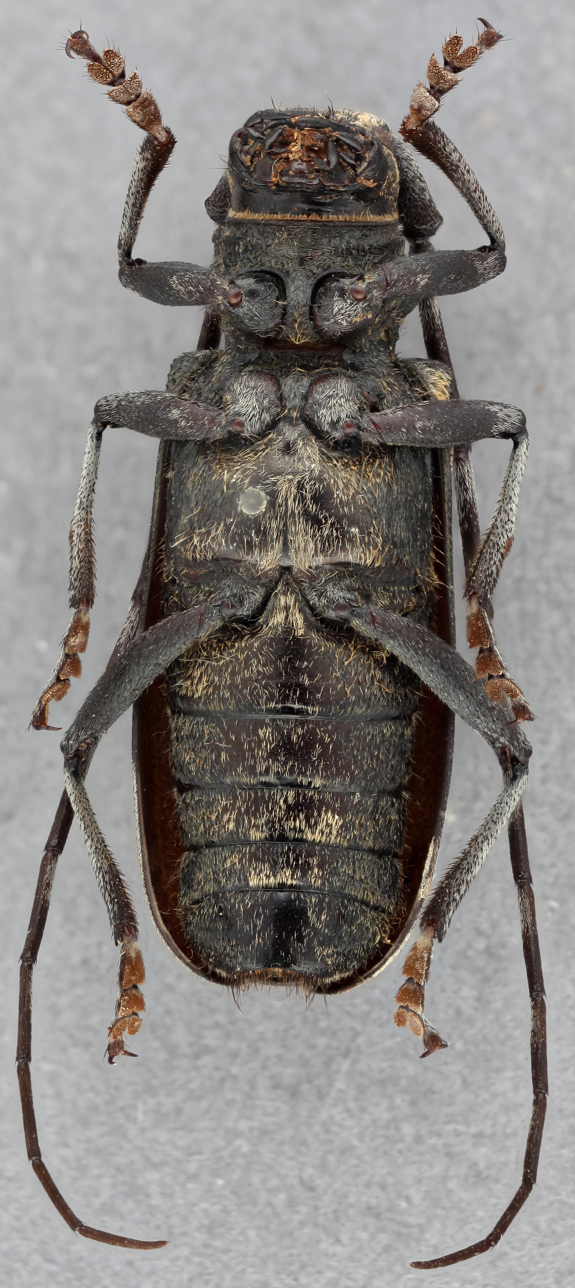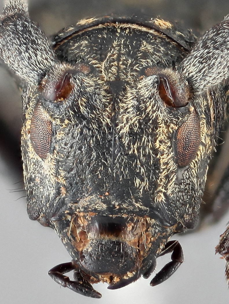 punctation and gray, very sparse, sometimes unevenly dense, adherent, laterally with dark brown erect hairs. Lateral tubercles of pronotumpronotum: