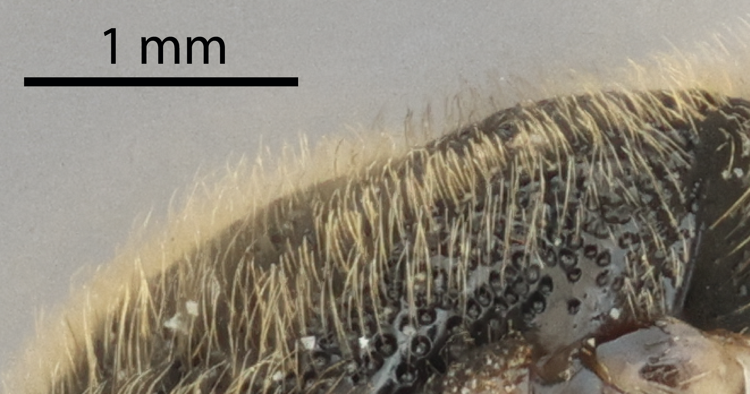 covering of hairs on a surface. In the attached image, that surface is the mesoscutum in profile view.