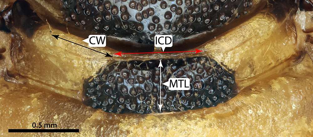 is an elaborate comb, with two tines on most flagellomeres. Other conditions that (in part) distinguish pine sawflies from their relatives are the absence of a mesoscutellar appendage, and the separation of the metapleuron from abdominal tergitetergite: