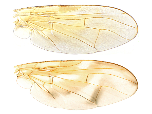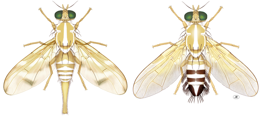 • Habitus, male & female (dorsal). • Habitus, male (dorsal). • Wings. Male. Female.