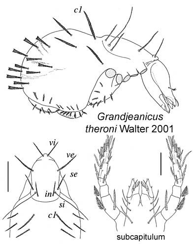 Walter DE. 2001. Endemism and cryptogenesis in ‘segmented’ mites: A review of Australian Alicorhagiidae, Terpnacaridae, Oehserchestidae and Grandjeanicidae (Acari, Sarcoptiformes). Australian Journal of Entomology 40: 207-218.).