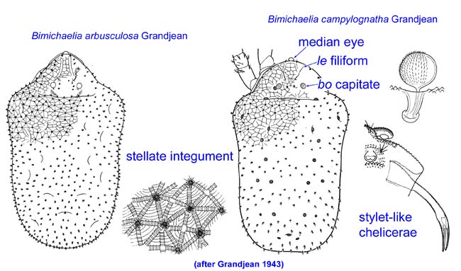 Grandjean F. 1939. Quelques genres d’acariens appartenant au groupe des Endeostigmata. Annales des Sciences Naturelles, Zoologie 11 (ser. 2): 1-122.; Bimichaelia dimixsetosa McDaniel (Bimichaelia dimixsetosa texana); Bimichaelia disetosa McDaniel; Bimichaelia novazealandica Womersley; Bimichaelia pusilla Womersley 1944Womersley 1944: