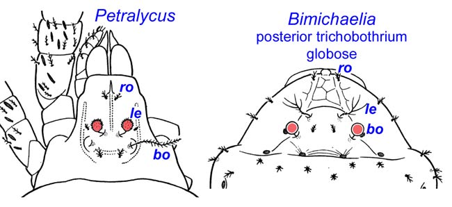 Species of Petralycus have the anterior pair of trichobothria capitate and the posterior pair filiform.