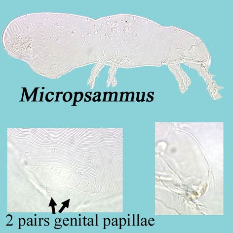 Superorder Acariformes » Order Sarcoptiformes » Suborder Endeostigmata » Infraorder Nematalycina » Superfamily Nematalycoidea » Family Micropsammidae » Genus Microspammus