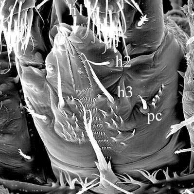 and separate laciniae. Hypostomal setaseta: