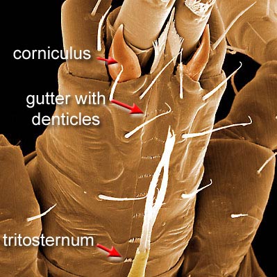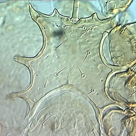 Parasitina (Mesostigmata) have enlarged metasternal shields that superficially resemble the trigynaspid condition, and some primitive Uropodina (e.g., Trachytes) do retain separate latigynial shields. However, neither of these taxa retain av4/pv4 on tarsustarsus:
