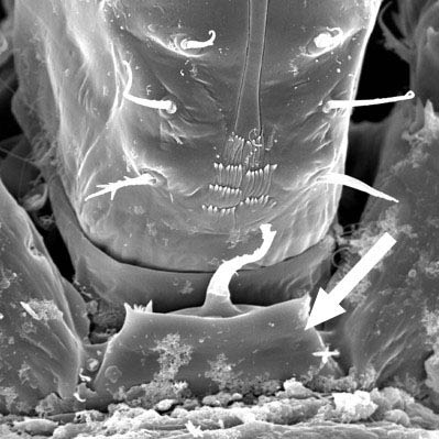 small tooth-like processes, e.g., on the subcapitula of ticks and many mesostigmatans.