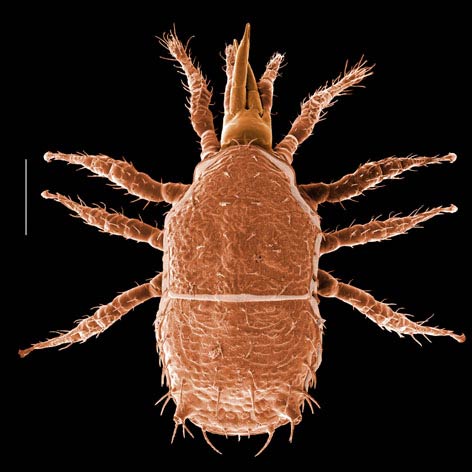 Most of the Mesostigmata encountered in quarantine intercepts are likely to be members of the Monogynapsida, including many species parasitic on birds (e.g., poultry mites), mammals (e.g., rat mites), reptiles (e.g., the snake mite), and bees (e.g, Varroa, Tropilaelaps); predatory mites used in biocontrol; flower mites; stored product predators; and predatory soil mites. Some of the vertebrate parasites (Dermanyssoidea) vector disease.