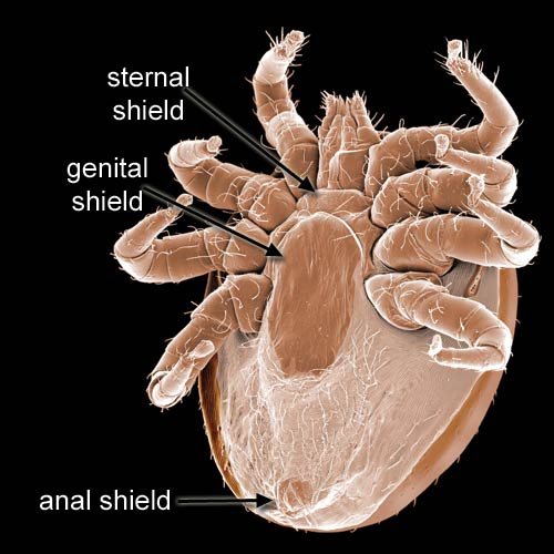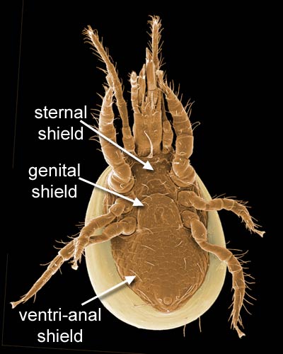 , mesonotal and pygidial shields or divided into two subequal shields (podonotalpodonotal: