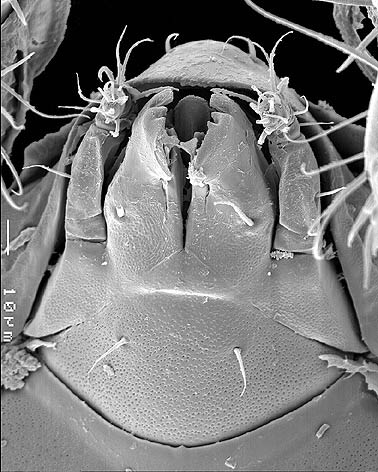 a recess under the rostral tectum that allows retraction of the chelicerae and palps of oribatid mites and that is sealed by the subcapitulum when retracted; a deep recess containing the gnathosoma in Uropodina.. Ventral plateventral plate: