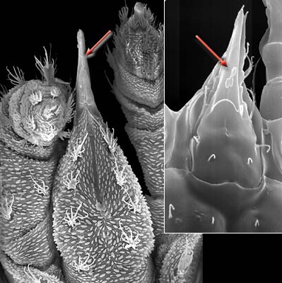 ; well developed ovipositor in the female, spermatophoric organ in the male. Subcapitulumsubcapitulum: