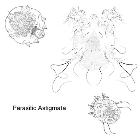 contains many species of concern that are pests in homes (house dust, furniture, food) and stored products. These products are directly damaged by mite feeding and indirectly by the dispersal of microbial propagules. Additionally, astigmatans are major sources of allergens and significant contributors to asthma and other allergic reactions. Astigmatans are also significant parasites of vertebrates, including species that cause mange in livestock, pets and wildlife. Scabies is a significant disease in people and sarcoptic mange a major problem with livestock, pets and wildlife. Insects, especially those that build nests or inhabit logs, have a host of astigmatanastigmatan: