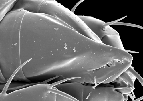 (= palp apotele, palptarsal claw) the most distal segment of the palp; absent in Acariformes, claw-like in Opilioacarida, and a subdistal, tined structure in the Mesostigmata.; subcapitulumsubcapitulum: