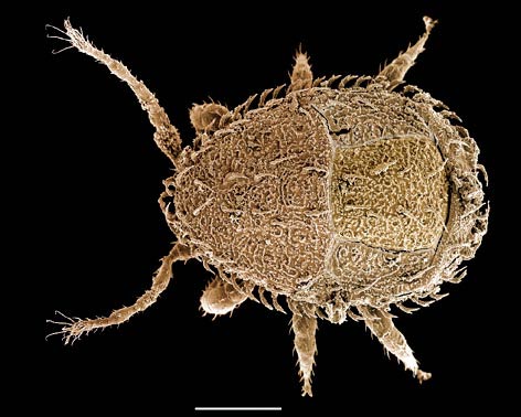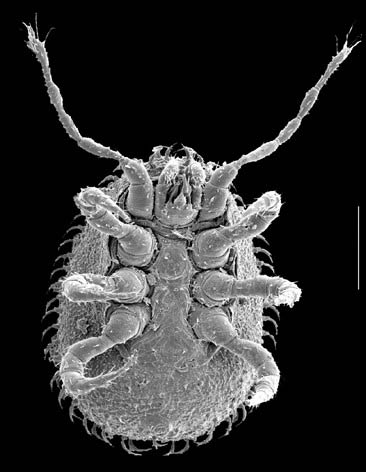 - Brownish oval mites covered in waxy cerotegumentcerotegument: