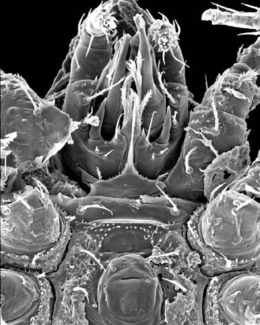 small tooth-like processes, e.g., on the subcapitula of ticks and many mesostigmatans.