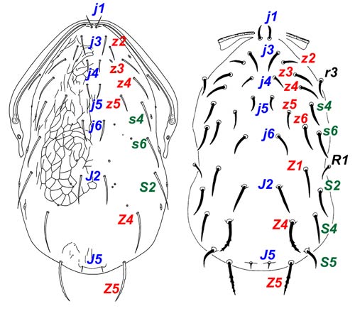 Z1, S2, S4 and S5. Amblyseiinae lack both setaeseta: