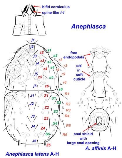 Similar taxa in key. The Chilean genus Anephiasca Athias-Henriot appears to be most similar to the Australian genus Ectoantennoseius, but can be differentiated by the distally bifurcatebifurcate: