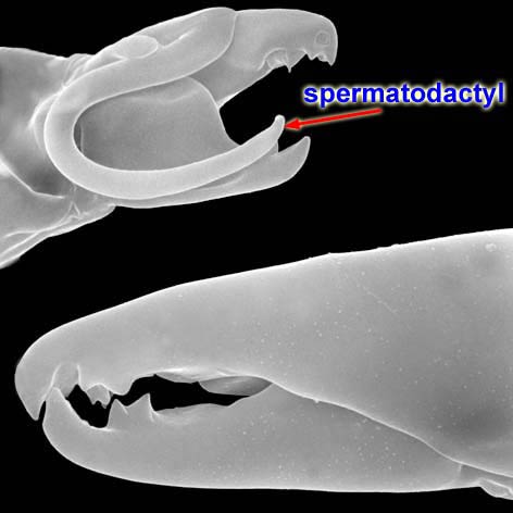 (= palp apotele, palptarsal claw) the most distal segment of the palp; absent in Acariformes, claw-like in Opilioacarida, and a subdistal, tined structure in the Mesostigmata. 2-tined.............................. 6