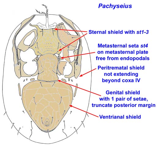 Superorder Parasitiformes » Order Mesostigmata » Suborder Monogynaspida » Infraorder Gamasina » Hyporder Dermanyssiae » Superfamily Eviphidoidea » Family Pachylaelapidae » Genus Pachyseius
