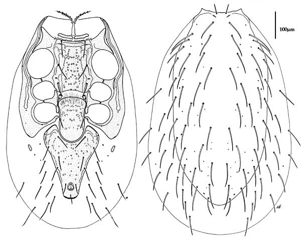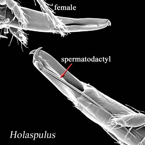 -trifurcate. Female sperm induction pores near bases of coxae IV. Males with genital opening at basebase:
