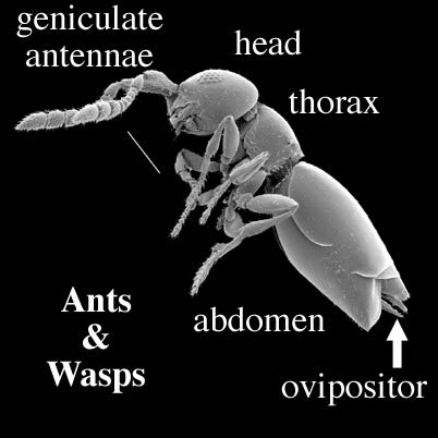 Comments: Insects have a head with antennae (and often compound eyes); a thorax with 3 pairs of legs (and often 1–2 pairs of wings); and an abdomen that usually lacks styli, but may have an ovipositorovipositor: