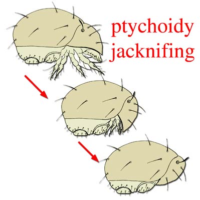 oribatid mites that exhibit ptychoidy, the ability to withdraw their limbs and close-up like a box.