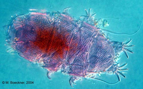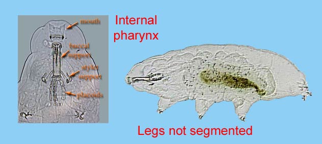 . Tardigrades could easily be confused with mites, especially the armored species, but all mites will have typical segmented arthropod legs.