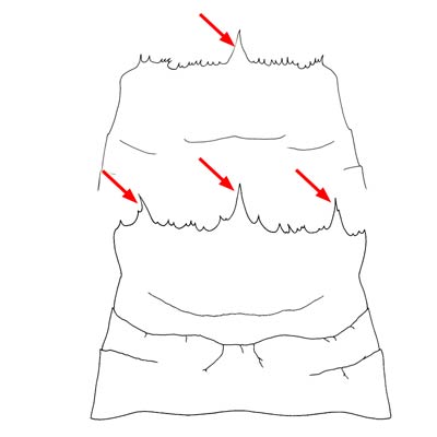 projects over the chelicerae, is denticulatedenticulate: