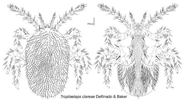 Finally, most mites have a fairly sparse array of setae (mechanoreceptors) on their bodies. However, some have a dense, furry pelage (e.g., some Endeostigmata and Anystina) or a covering of large leaf-like or plate-like setae (e.g., some Endeostigmata, Enarthronotides, Brachypylina, and Eleutherengonides). Some important parasites of bees (e.g., Tropilaelaps spp. in Monogynaspida) also have a dense covering of setae.