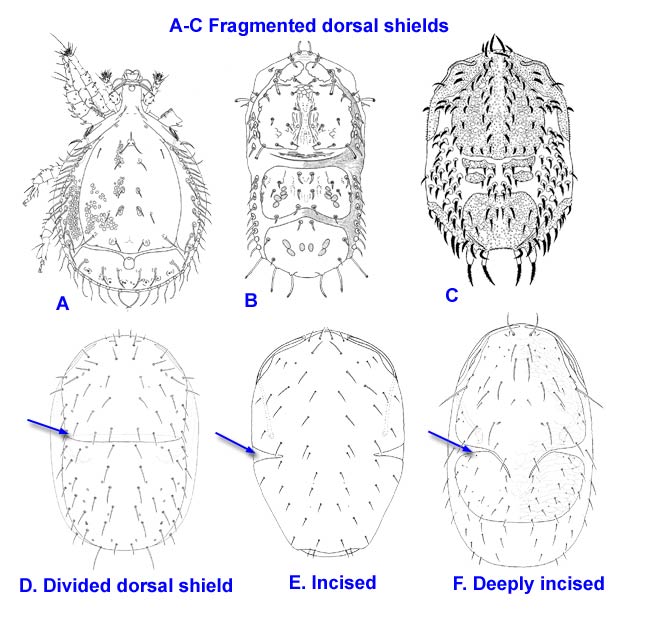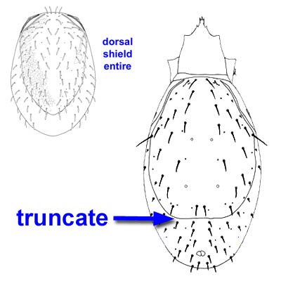 of the adult female is covered by a single, entire holodorsal shieldholodorsal shield: