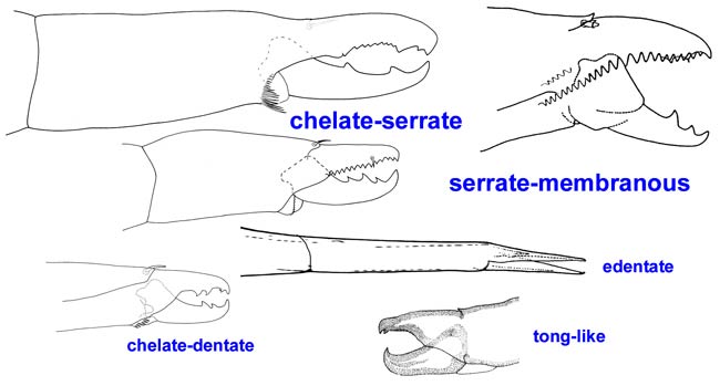 chelate-serrate. In some groups the serrations are soft and flexible
