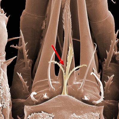 the sternum of the 3rd body segment (between legs I); produced as a biflagellate structure in Mesostigmata, although sometimes the flagellae (laciniae) are partially or completely fused.
