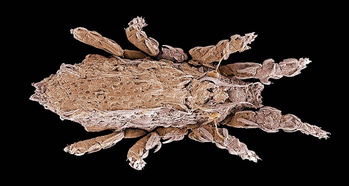 and head shield, although usually transparent and less likely to be confused with box mitesbox mites: