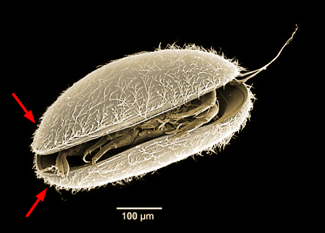 Seed shrimp (Ostracoda) have clam-like bivalvedbivalved: